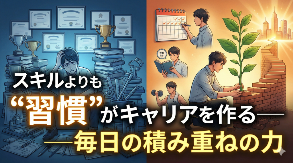 キャリアを築くうえで大切なのは、特別な才能ではなく“続ける力”です。どんなスキルも、日々の習慣によって磨かれ、定着していきます。毎日の積み重ねは目立たなくても、数年後に大きな差になります。努力を「一気にやること」ではなく、「自然に続けられる仕組み」に変えることが重要です。小さな行動を積み重ねる習慣が、自分を成長させ、キャリアを支える最強の土台になります。